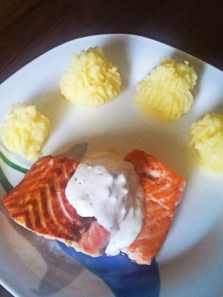 Danes se nikakor nisem mogla odločiti kaj kuhati. Kolebala sem med dvema opcijama in povprašala za mnenje prijatelje. No, da bo losos sem že vedela. Radi imamo lososa, pa še za malčke je super. Je ena najbolj zdravih rib in je zelo priporočljiva. Tako, da sta tokrat vojno bíla kuskus s porom in česnov pire. In od vseh prijateljev, ki so glasovali je samo ena glasovala za kuskus. Torej je očitna zvezda današnjega kosila pire krompir…ja, priznam, tudi jaz ga obožujem že od malih nog, ko mi ga je babi postregla kar z domačim jabolčnim kompotom 🙂
